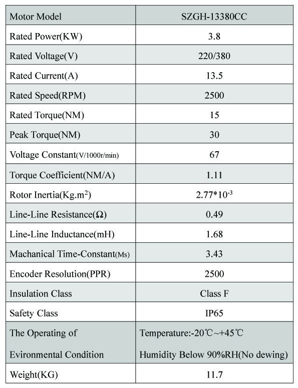 GH-13380CC is 3800W ,15NM,130 flange AC servo motor high inertia servo motor, its continuous torque can arrive at 15Nm, and peak torque is 45Nm, rated voltage is three phase 380V. It is used to large load equipment.